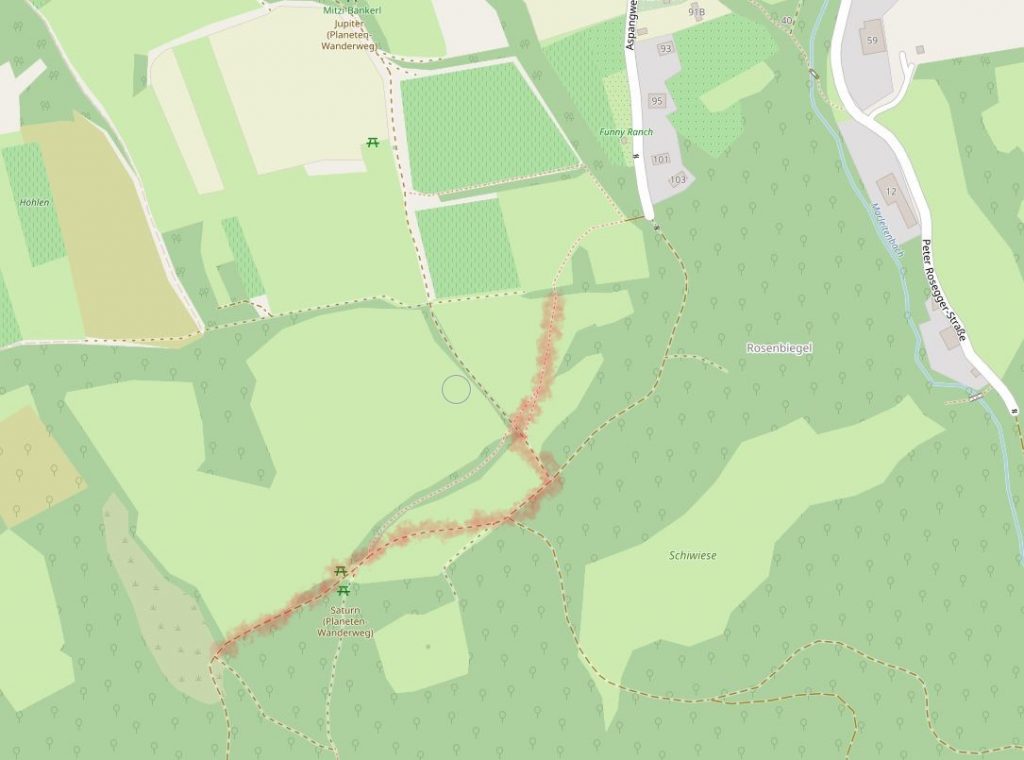 Entlang einer festgelegten Strecke unterhalb der Jahnhöhe (Wegskizze siehe Bild)